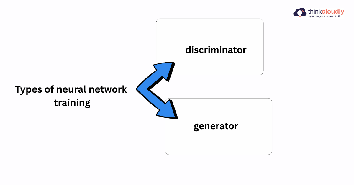There are two types of neural network training: the discriminator and the generator. The discriminator identifies the real and fake data, whereas the generator generates fake data. There are variants available, such as DCGAN, StyleGAN, and CycleGAN, to improve the performance and quality of the data.