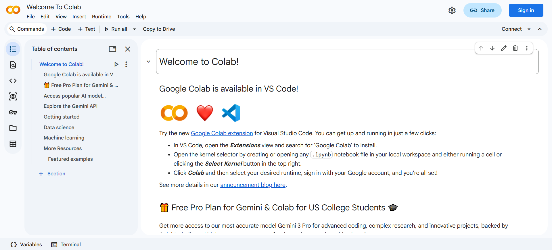 Why people love it: It’s free. Run deep learning experiments on a free GPU, share notebooks instantly, ask Gemini to write or debug code inline. For learners, nothing comes close.
