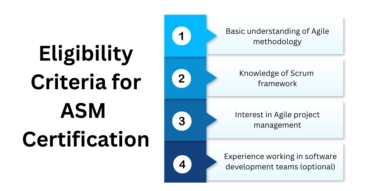 Anyone interested in becoming an agile scrum master can apply for the ASM certification.