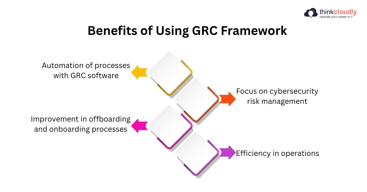 The GRC framework protects your cybersecurity risk management systems and data by identifying, assessing, and mitigating risks. This can improve management and reduces the likelihood of security incidents and helps to protect the reputation and assets.