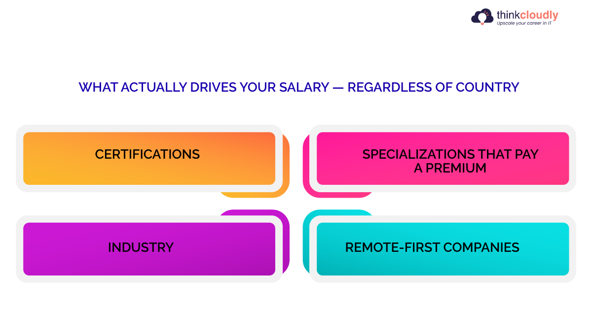 A cloud engineer with strong AWS or Azure certifications, hands-on Kubernetes experience, and cloud security knowledge will command a premium in every single country on this list. Geography sets your ceiling — skills determine how close you get to it.