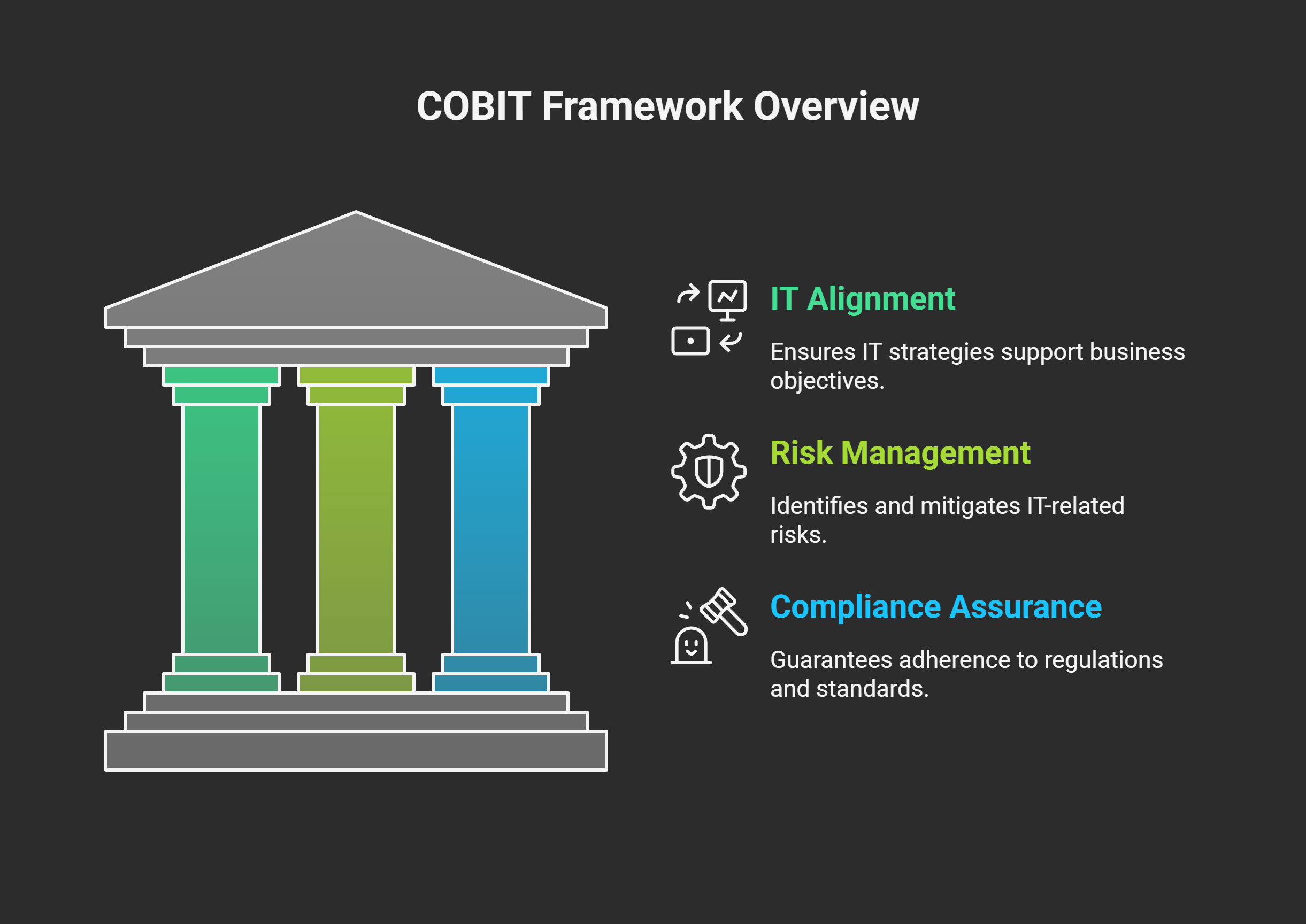 With COBIT, boards and executives can view IT performance in detail. They get reliable information about controls, audit results, and system health. This helps them make informed decisions and ensures IT strategies always support business objectives.