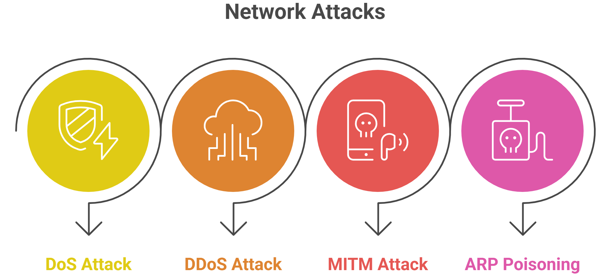 In today’s digital world, network security is more important than ever. Every day, businesses, organizations, and individuals face threats from hackers trying to disrupt services, steal information, or gain unauthorized access. Understanding common network attacks is the first step to protect yourself and your systems. In this blog, we’ll cover some of the most common attacks: DoS, DDoS, MITM, and ARP poisoning.