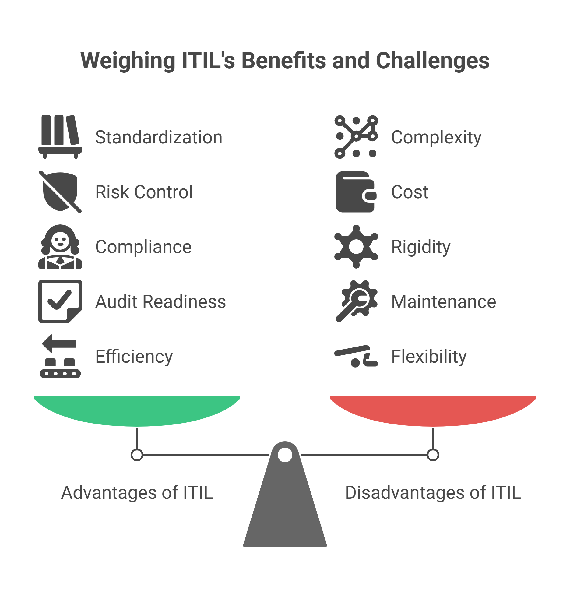 The combination of ITIL and GRC helps organizations manage risks, pass audits, and stay compliant while ensuring reliable IT services.