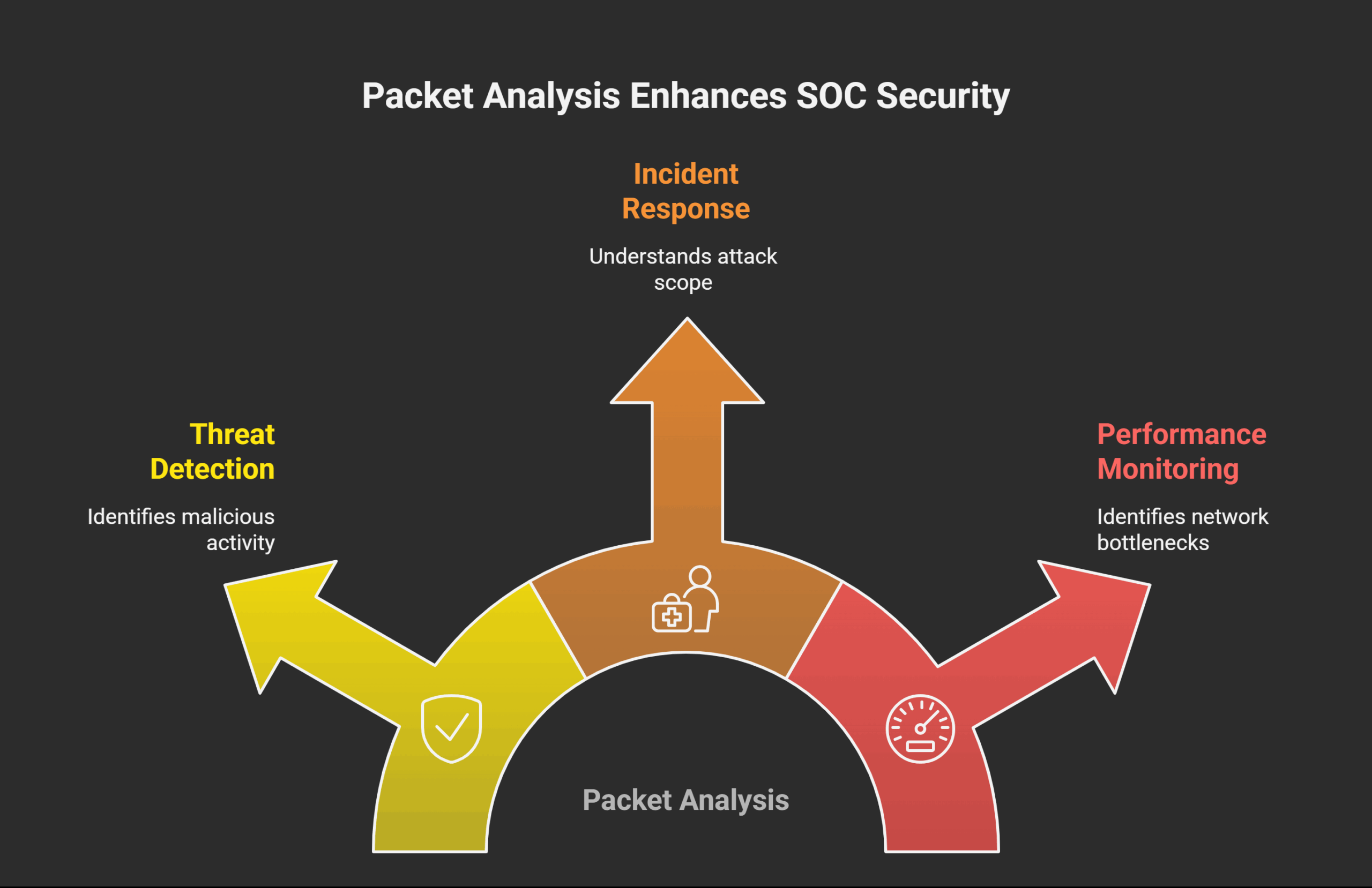 Without packet analysis, SOC teams would have very limited insight into what’s happening inside the network. It gives a complete view of all communications, making it possible to detect threats that automated tools might miss.