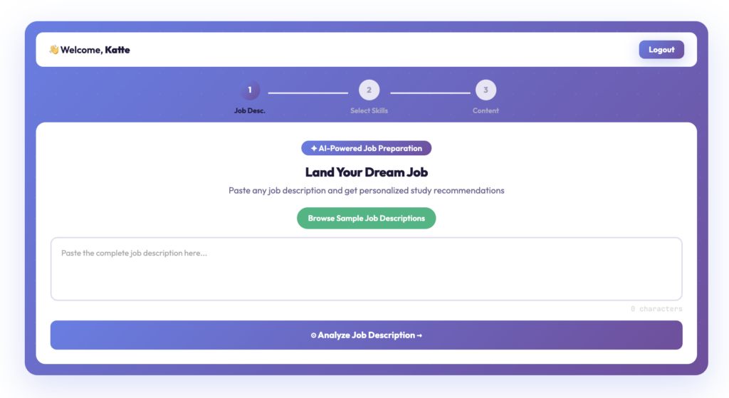 Paste your JD. Get skill tags. Pick what you need. Get curated content. Done in 30 seconds.